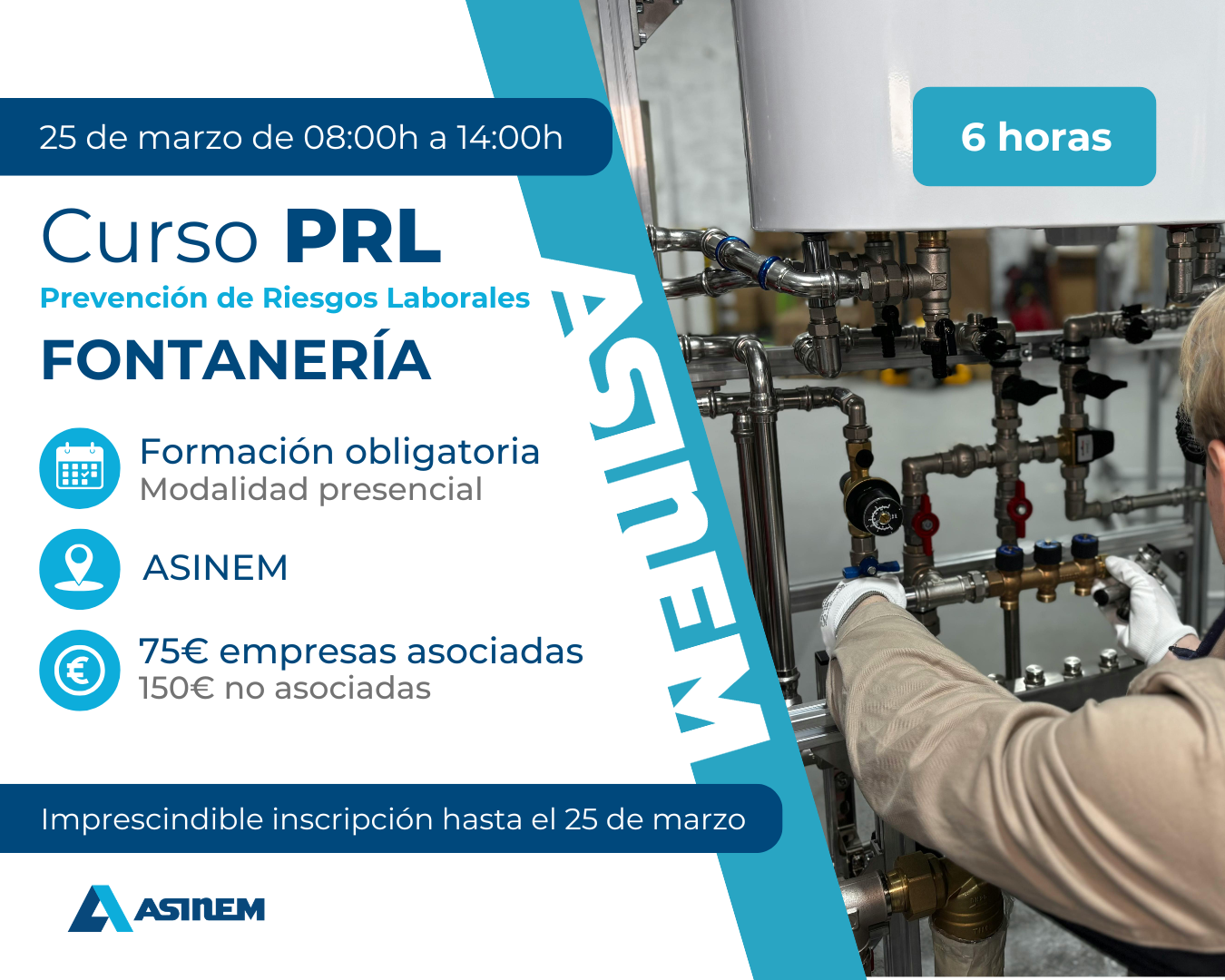 Curso Prevención de Riesgos Laborales 6h Fontanería y climatización MARZO 2026